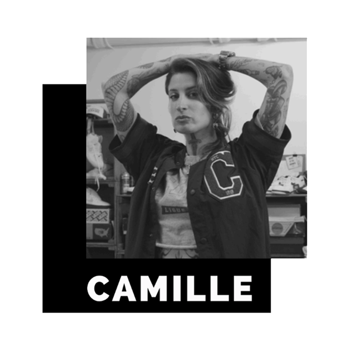 Soyons clairs : si elle est en plateau, c’est qu’elle n’a laissé le choix à personne. Holycamille s’est rapidement imposée par la terreur dans l’équipe et il est désormais bien trop tard pour faire marche arrière (d’autant qu’on a toujours un peu peur...). Ennemie jurée de la langue de bois, Camille peut défendre de tout son cœur une paire de Crocs soldée contre une New Balance de prestige fabriquée à la main au fin fond du Massachusetts et portée aux nues par la hype. La créatrice de contenu n’est donc pas là par hasard : grande fan de sneakers depuis des années, elle appose son regard pointu et déverse un bon paquet de punchlines (de plus ou moins bonne foi) sur les nouveautés comme sur les archives présentées dans les formats Elle Est Bonne Sa Paire.